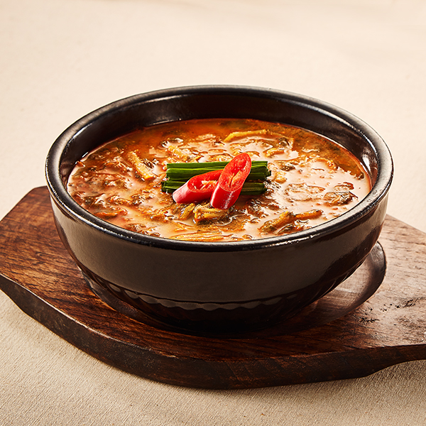 설악추어탕은 흐르는 물에 유수 해동하여 국 솥에 넣고 끓이면서 맛을 확인 및 관능 조리
